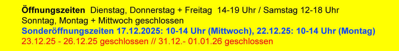 Freitag 19.12.25: 14 - 19 Uhr